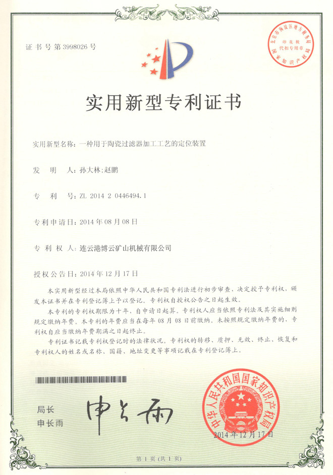 一種用于陶瓷過濾機加工工藝的定位位置